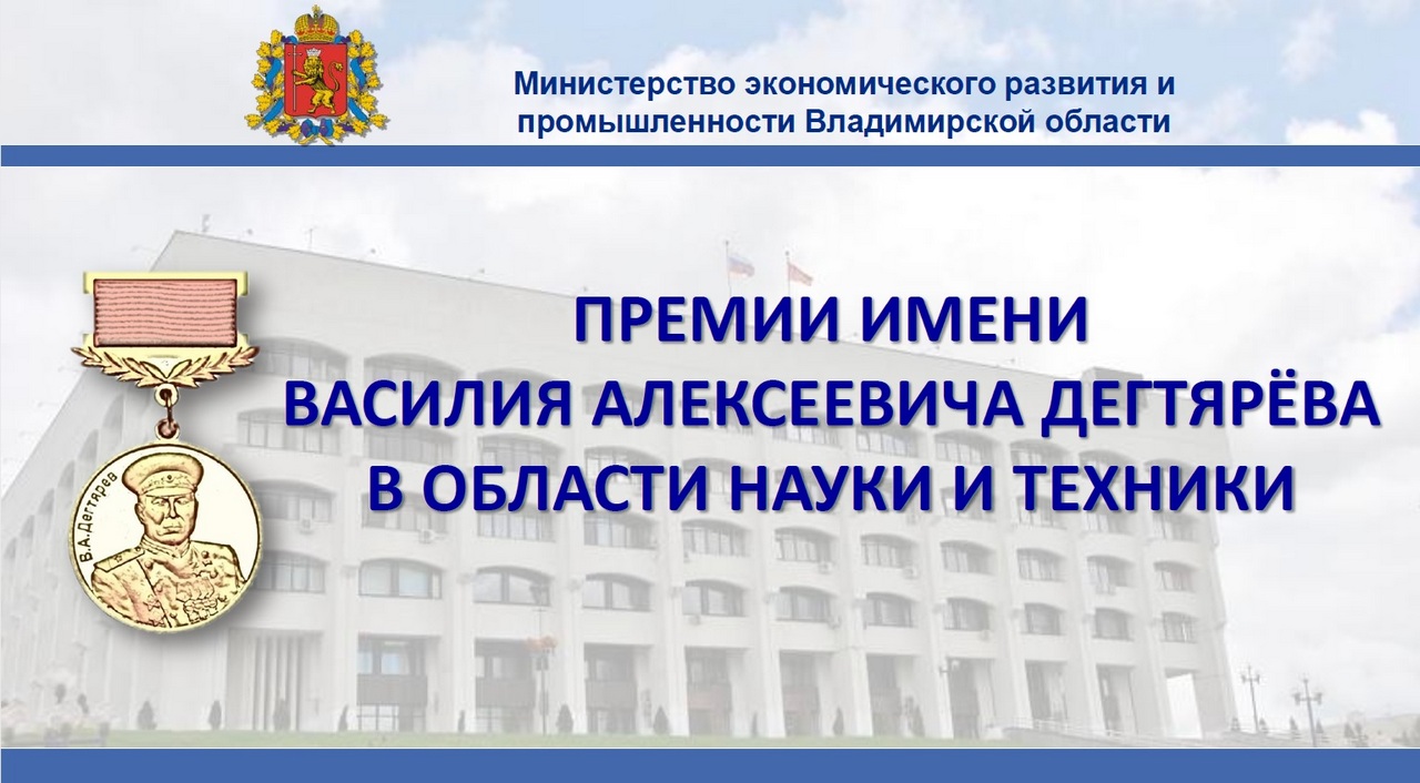 1 февраля начинается приём заявок на участие в региональном конкурсе на соискание премий имени В.А. Дегтярёва в области науки и техники. Его проводит Министерство экономического развития и промышленности Владимирской области в соответствии с Указом Губернатора от 28.01.2021 № 11 для повышения престижа научно-технической и инновационной деятельности.
