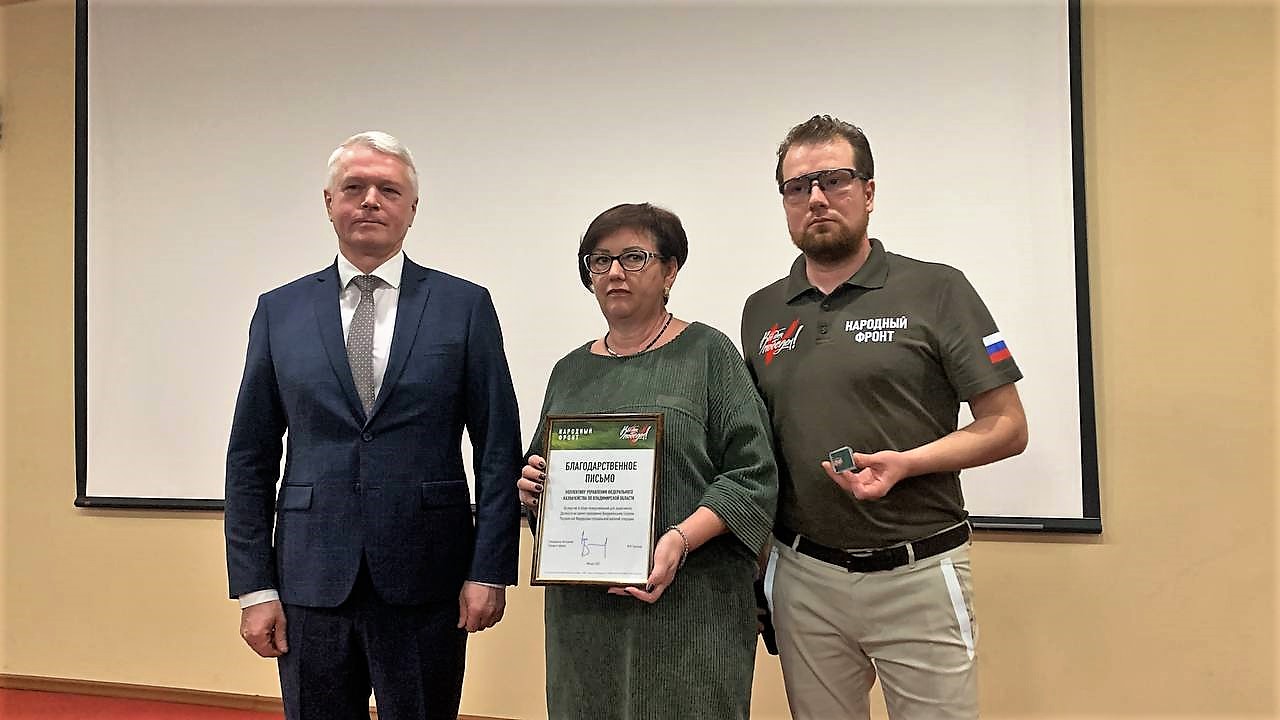 30 мая 2023 года федеральный инспектор по Владимирской области аппарата полномочного представителя Президента Российской Федерации в Центральном федеральном округе Игорь Кацай и руководитель регионального исполкома Народного фронта во Владимирской области Артем Старостин в торжественной обстановке вручили руководителю Управления Федерального казначейства по Владимирской области Светлане Загваздиной Благодарственное письмо народного фронта коллективу Управления за участие в сборе пожертвований для защитников Донбасса во время проведения Вооруженными Силами Российской Федерации специальной военной операции и памятный значок Благотворительного фонда «Народный фронт. Все для Победы».