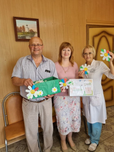 Директор учреждения Юлия Саблина передала ромашки-подвески и письма с поздравлениями в родильное отделение Многопрофильной больницы № 1 города Коврова. Акция получила положительный отклик у медицинских работников. С июля ромашки будут вручаться семьям на выписке, родители новорожденных малышей получат трогательные подарки от детей.