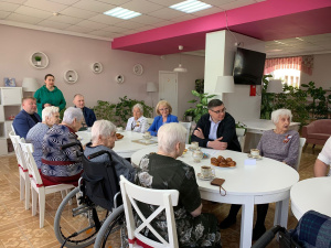 Затем Губернатор за чашкой чая пообщался с теми, кто сейчас проживает в геронтологическом центре. Среди них есть и ветераны Великой Отечественной войны. Глава региона поздравил всех с предстоящим Днем Победы, пожелал здоровья и бодрости духа, вручил подарки. А учреждению передал сертификат на покупку автобуса с подъемником. На нем проживающие смогут выезжать на экскурсии, выставки и концерты.