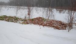 В ходе обследования установлено, что на всей площади земельных участков, предназначенных для сельскохозяйственного производства, правообладателями было допущено зарастание сорной и древесно-кустарниковой растительностью. Сорную растительность в засушенном состоянии и не способной к фотосинтезу видно, несмотря на наличие снежного покрова от 60 см. Кроме того, на одном из участков на площади ориентировочно 0,01 га выявлена несанкционированная свалка отходов производства (испорченные овощи).