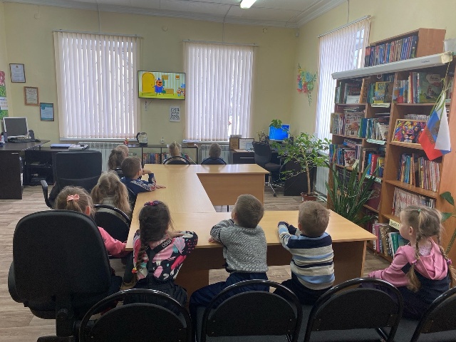 На вопрос «Зачем нужно ходить в библиотеку?» дети ответили после просмотра мультфильма с любимыми героями, где показан первый поход в библиотеку.