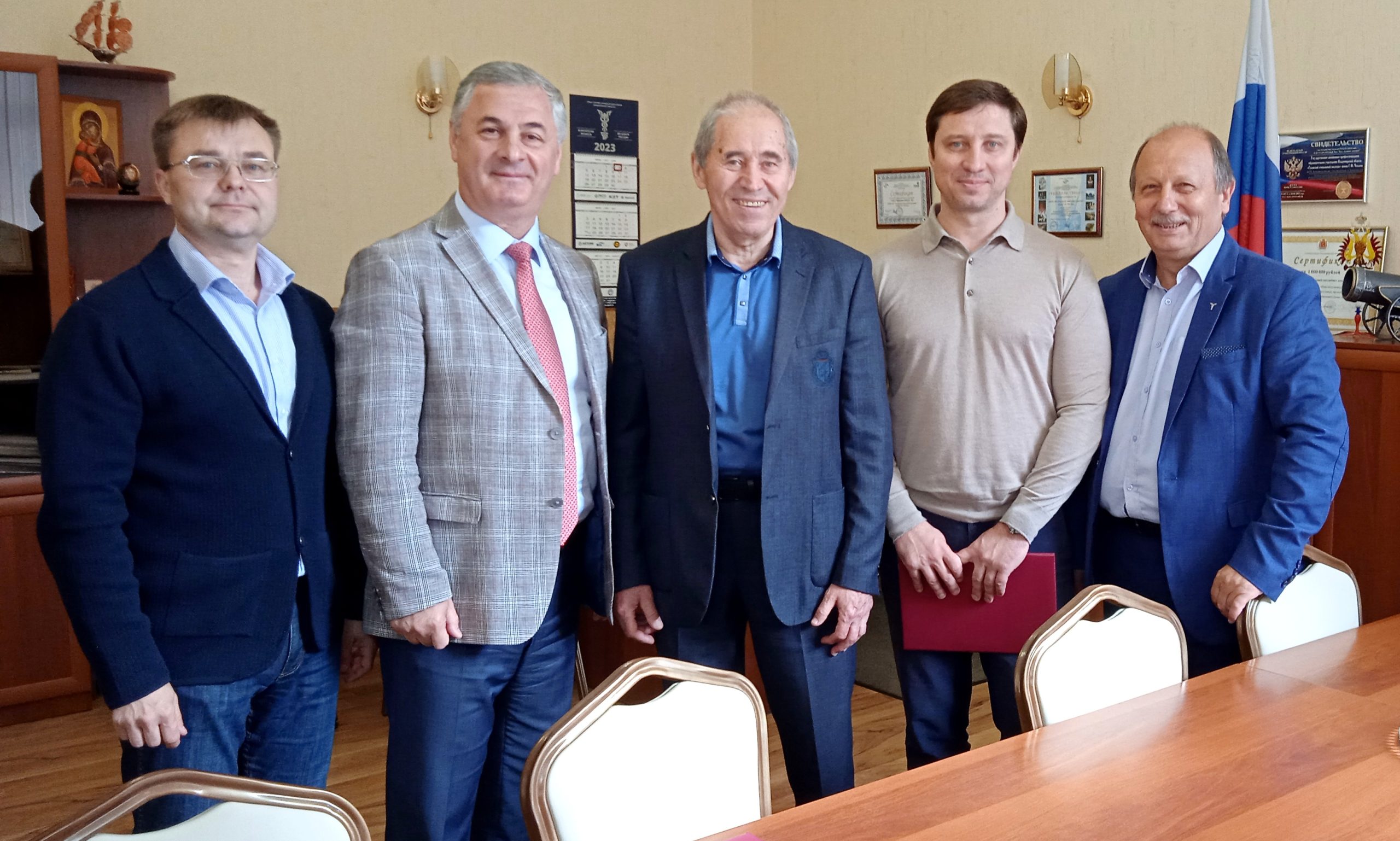 А.А. Панфилов — проректор по образовательной деятельности ВлГУ,А.М. Сералидзе — ректор ВлГУ, Ю.Д. Клегг — завкафедрой практической