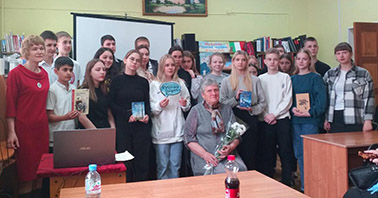 На встречу с малолетней узницей немецкого трудового лагеря «Эльсхорн №4», который находился в Гамбурге, пришли неравнодушные читатели, подруги Галины Алексеевны и восьмиклассники школы №5 с преподавателем Светланой Михайловной Ярыгой.