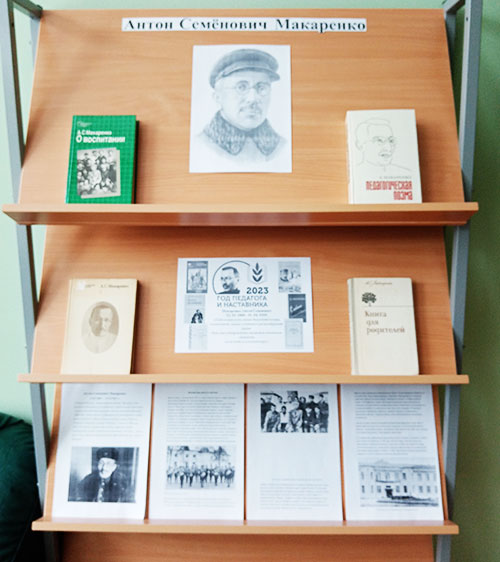 В Пекшинской сельской библиотеке подготовлена выставка книг и материалов об этом великом педагоге.Замечательные произведения Антона Семеновича Макаренко: книги, очерки, рассказы и статьи, фильмы с его участием, еще долгие годы будут нашими помощниками и друзьями, нашими мудрыми советчиками, и не только для тех, кто решил связать свою судьбу с учительством, а для всех без исключения, ведь самое главное, чему они учат нас — это человечности!