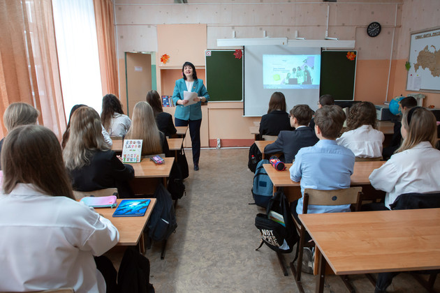 Классный руководитель Елена Чугунова проводит занятие «Разговоры о важном».Сегодня речь идет о системе воспитания в школьном образовании. В 36-й школе, как и в других учреждениях общего образования, тоже есть советник директора по воспитанию. Его задача - помочь ребятам определиться с выбором своего дальнейшего жизненного пути.