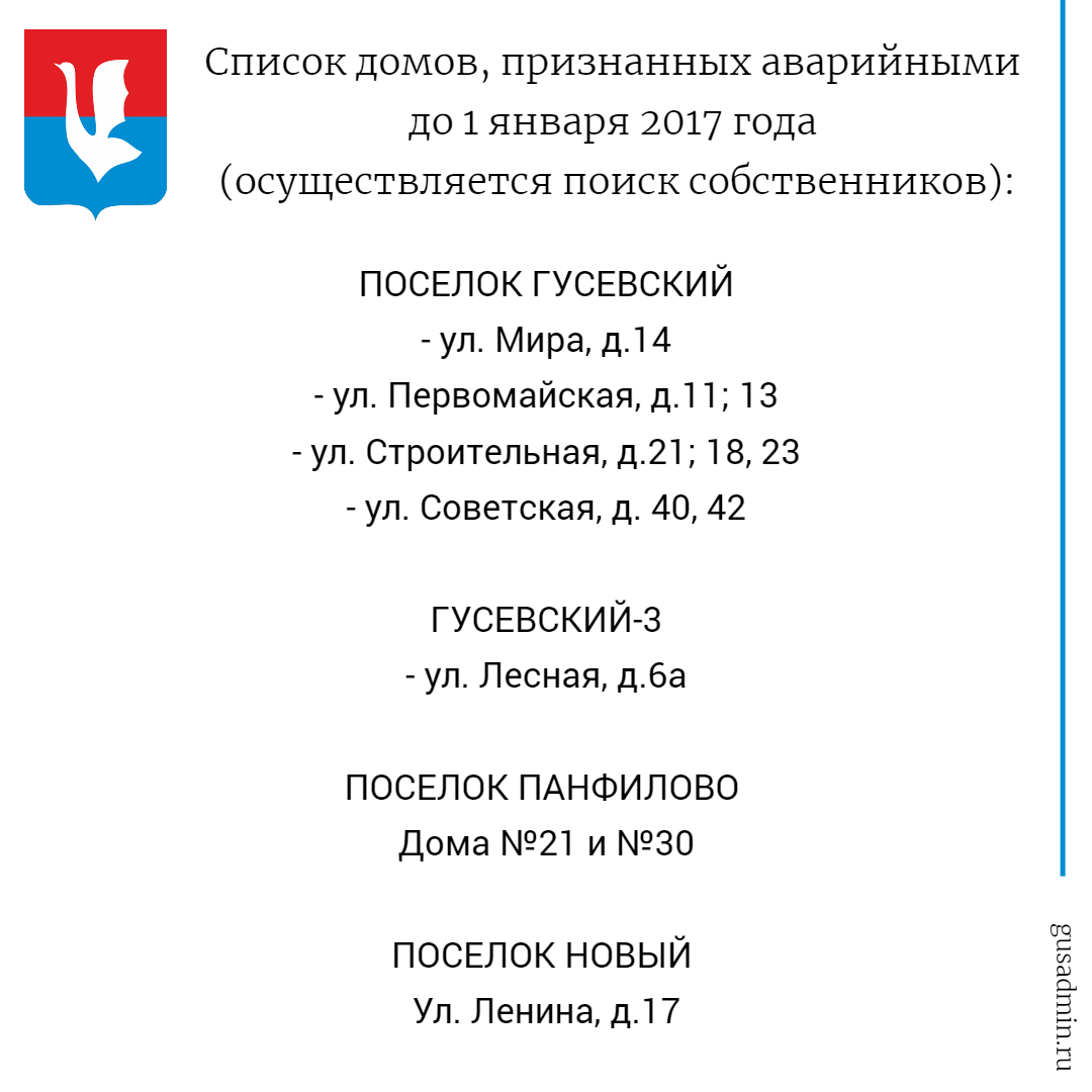 Список домов, признанных аварийными до 1 января 2017 года (осуществляется поиск собственников):