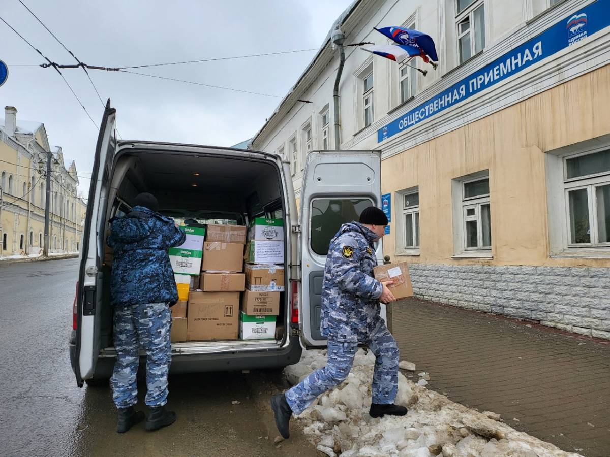 — Гуманитарную помощь нам приносят жители Владимирской области, разные организации, которые для нас уже стали партнерами, которые нам помогают в этой работе. Сегодня мы получили очередную помощь от судебных приставов. Они передали посылки для владимирских военнослужащих. Мы продолжаем свою работу, не останавливаемся. Поэтому все желающие, кто хочет принять в ней участие и оказать помощь нашим военнослужащим, а также гражданам, проживающим на территории ДНР и ЛНР, пожалуйста приходите, мы готовы с вами сотрудничать, — отметила Мария Никитина, заместитель руководителя региональной общественной приемной «Единой России».