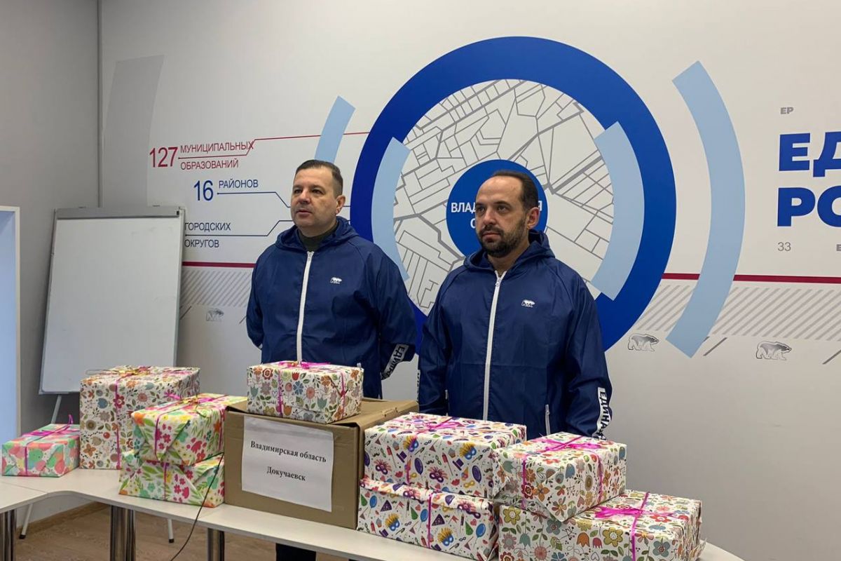 Владимирская область отправила в подшефный Докучаевск несколько тонн гуманитарной помощи. В преддверии XXI Съезда «Единой России». Старт гуманитарному конвою в новые регионы дал председатель партии Дмитрий Медведев и секретарь генсовета Андрей Турчак. Всего волонтеры «Единой России», депутаты всех уровней и предприниматели собрали более 600 тонн груза.