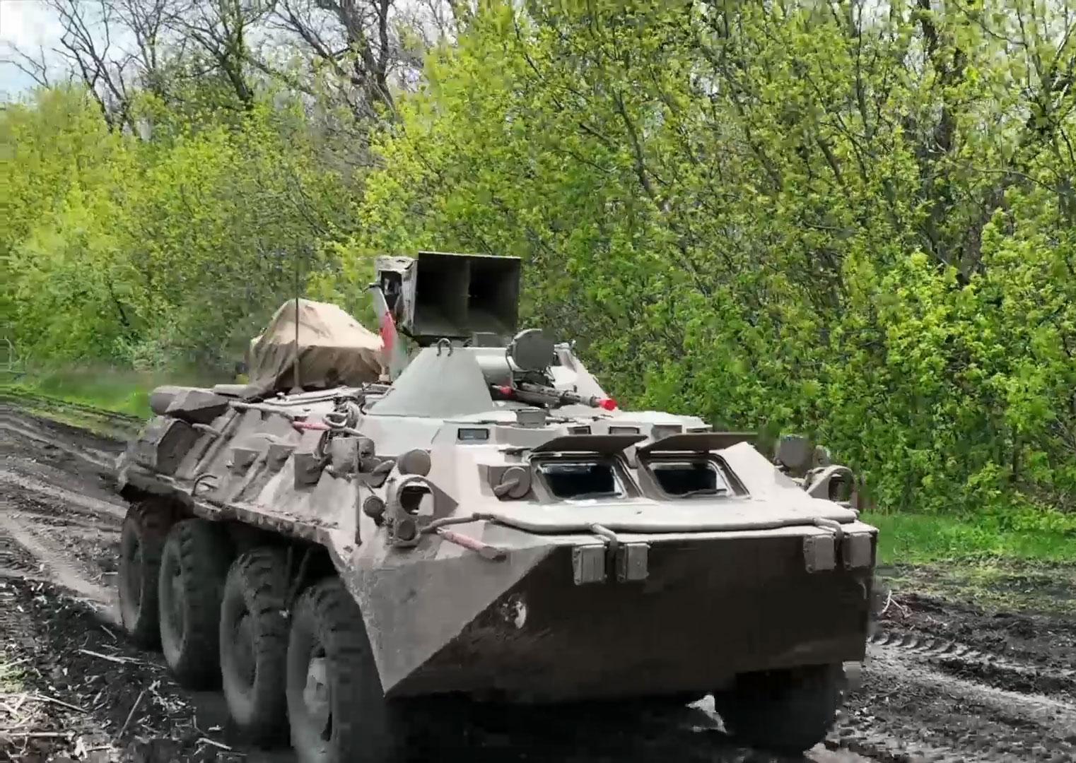На опубликованном видео Министерства обороны командир машины с позывным Колокол рассказал, что станция установлена на БТР-80 и может вещать на расстоянии до шести километров.