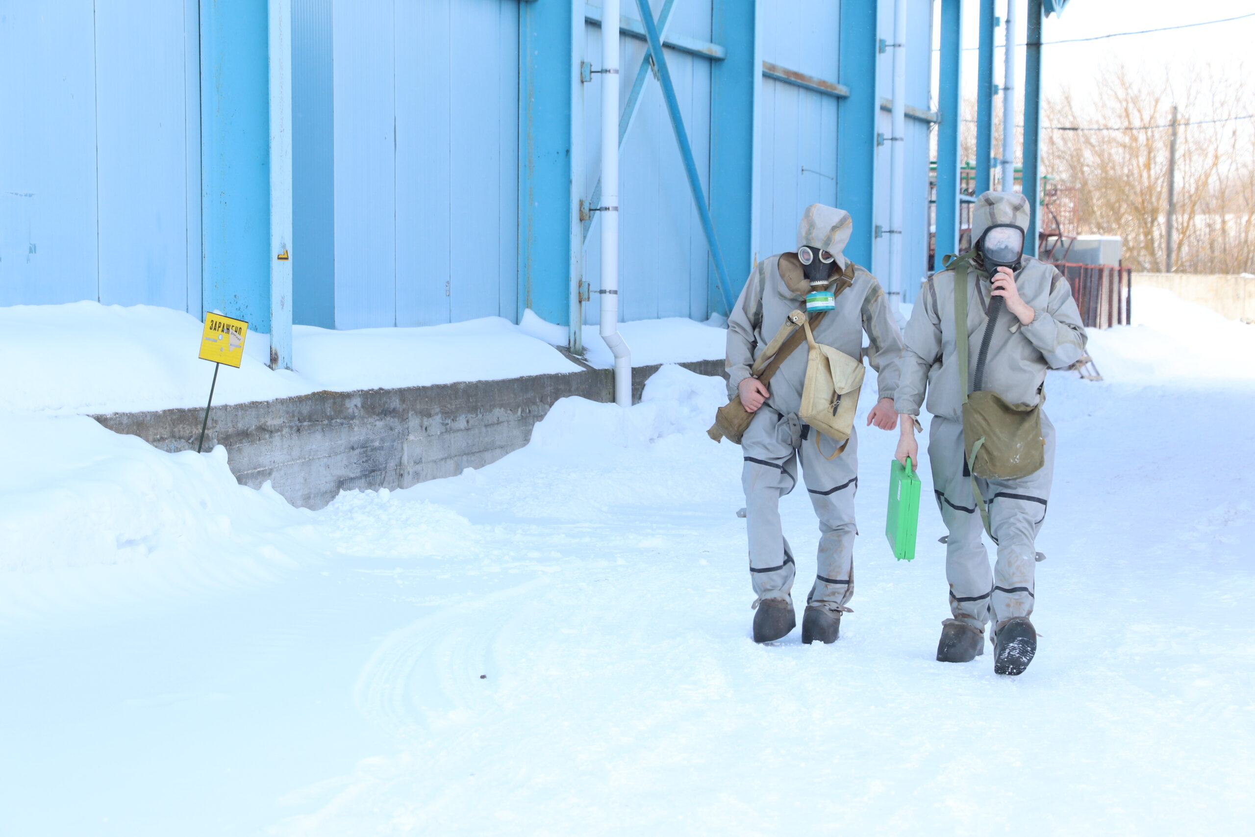 Там хранится 3,5 тонны аммиака. По легенде, произошла разгерметизация резервуаров с этим химически опасным веществом. После чего началось возгорание. Ликвидировать условное ЧП отправились больше двух десятков огнеборцев и 4 автоцистерны.