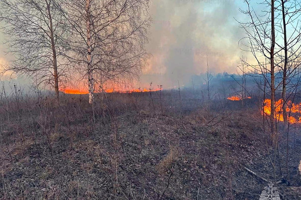 Сотрудники МЧС при помощи добровольцев смогли отстоять деревню от пала сухой травы