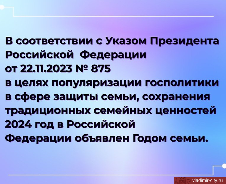 2024 год объявлен Президентом России Годом семьи