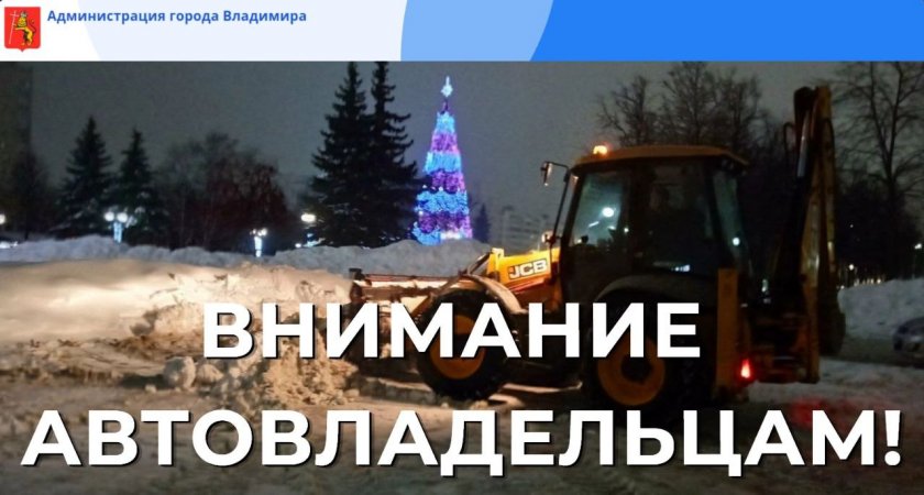 Администрация г.Владимира просит автовладельцев сегодня, 20 января с 20:00 и до 07:00 утра 21 января, убрать автомобили со следующих улиц, чтобы не мешать работе спецтехники: Ул.