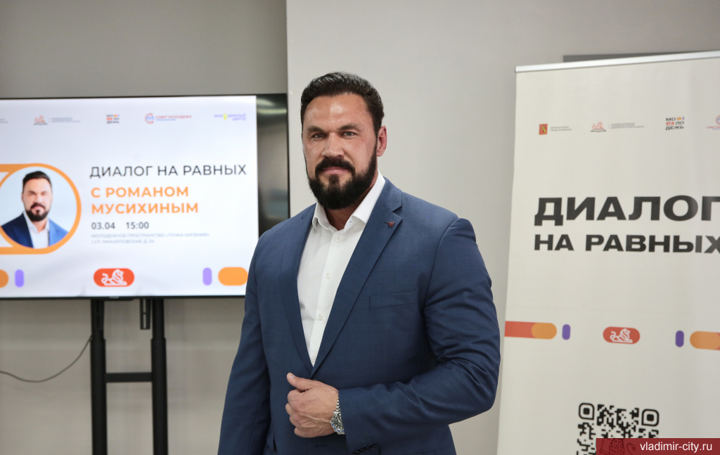 В пространстве «Точка кипения» на базе Молодёжного центра вновь собралось множество активных молодых людей для участия в мероприятии «Диалог на равных» с депутатом Совета народных депутатов города Владимира, председателем комитета по образованию, культуре, туризму, делам молодежи, социальной политике, физкультуре и спорту, Романом Мусихиным, который также является президентом Федерации регби Владимирской области.