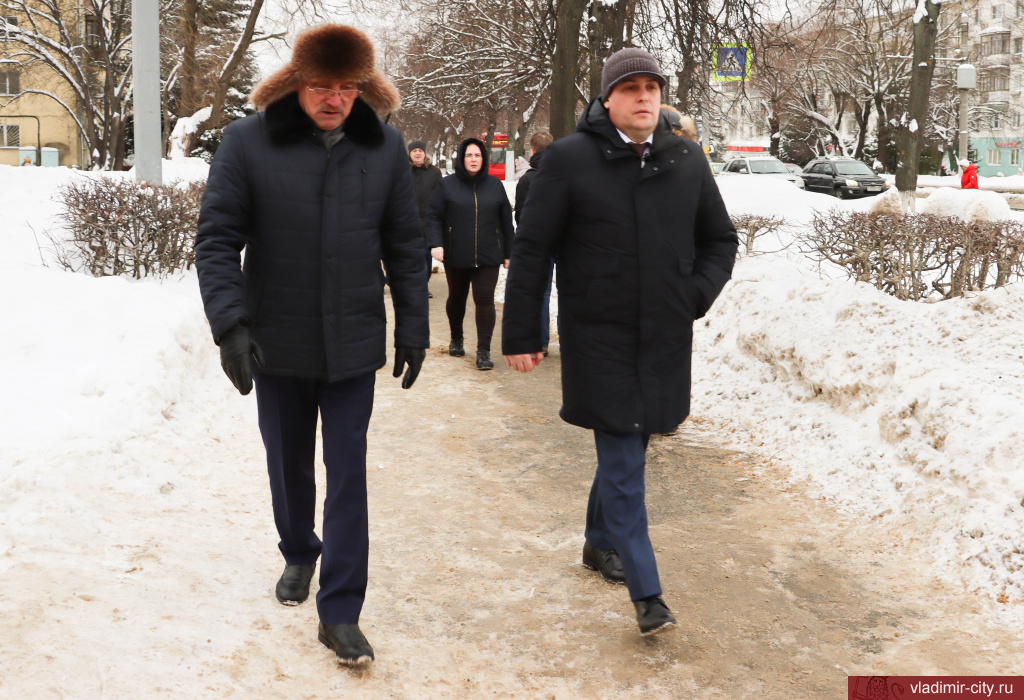 Сегодня в ходе рабочей поездки глава города Владимира Дмитрий Наумов проверил качество зимней уборки городских улиц, тротуаров, а также дворовых территорий многоквартирных домов.