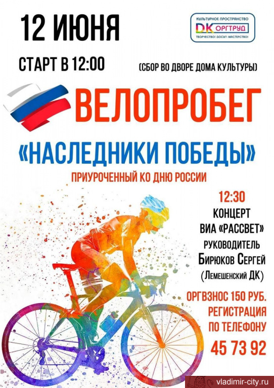 Дом культуры микрорайона Оргтруд приглашает к участию в велопробеге «Наследники Победы»