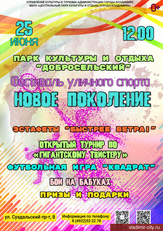 25 июня парк культуры и отдыха «Добросельский» приглашает всех любителей активного досуга на фестиваль уличного спорта «Новое поколение».