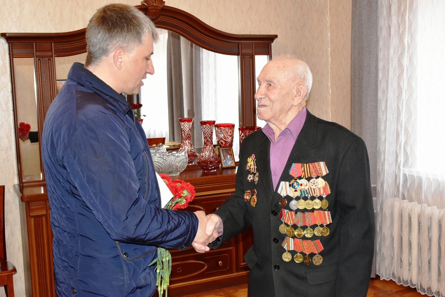 Глава города Алексей Соколов поздравил с праздником ветерана ВОВ Николая Федоровича Ушакова