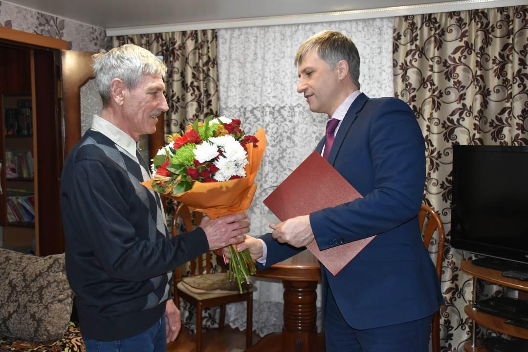 Глава города Алексей Соколов поздравил Евгения Васильевича с 70-летием.