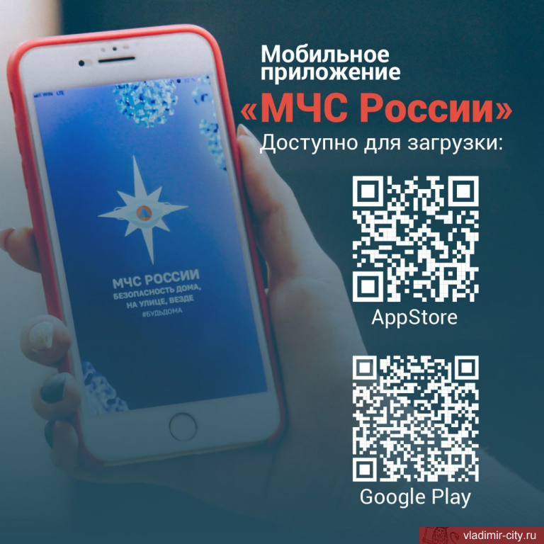 Управление гражданской защиты города Владимира информирует о том, что в МЧС России разработано приложение «МЧС России» (далее - мобильное приложение) для мобильных устройств, позволяющее пользователям приложения получать push-сообщения (уведомления) от органов повседневного управления единой государственной системы предупреждения и ликвидации чрезвычайных ситуаций различного уровня с экстренной информацией об опасностях, возникающих при угрозе возникновения или возникновении чрезвычайных ситуаций, о правилах поведения населения и необходимости проведения мероприятий по защите, о фактических и прогнозируемых опасных природных явлениях и техногенных процессах, загрязнении окружающей среды, заболеваниях, которые могут угрожать жизни или здоровью граждан, а так же правилах поведения и способах защиты.