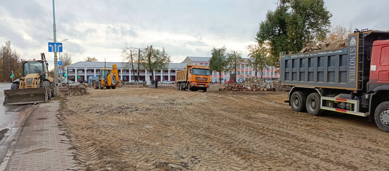 В центре города Гусь-Хрустальный продолжается благоустройство территории.