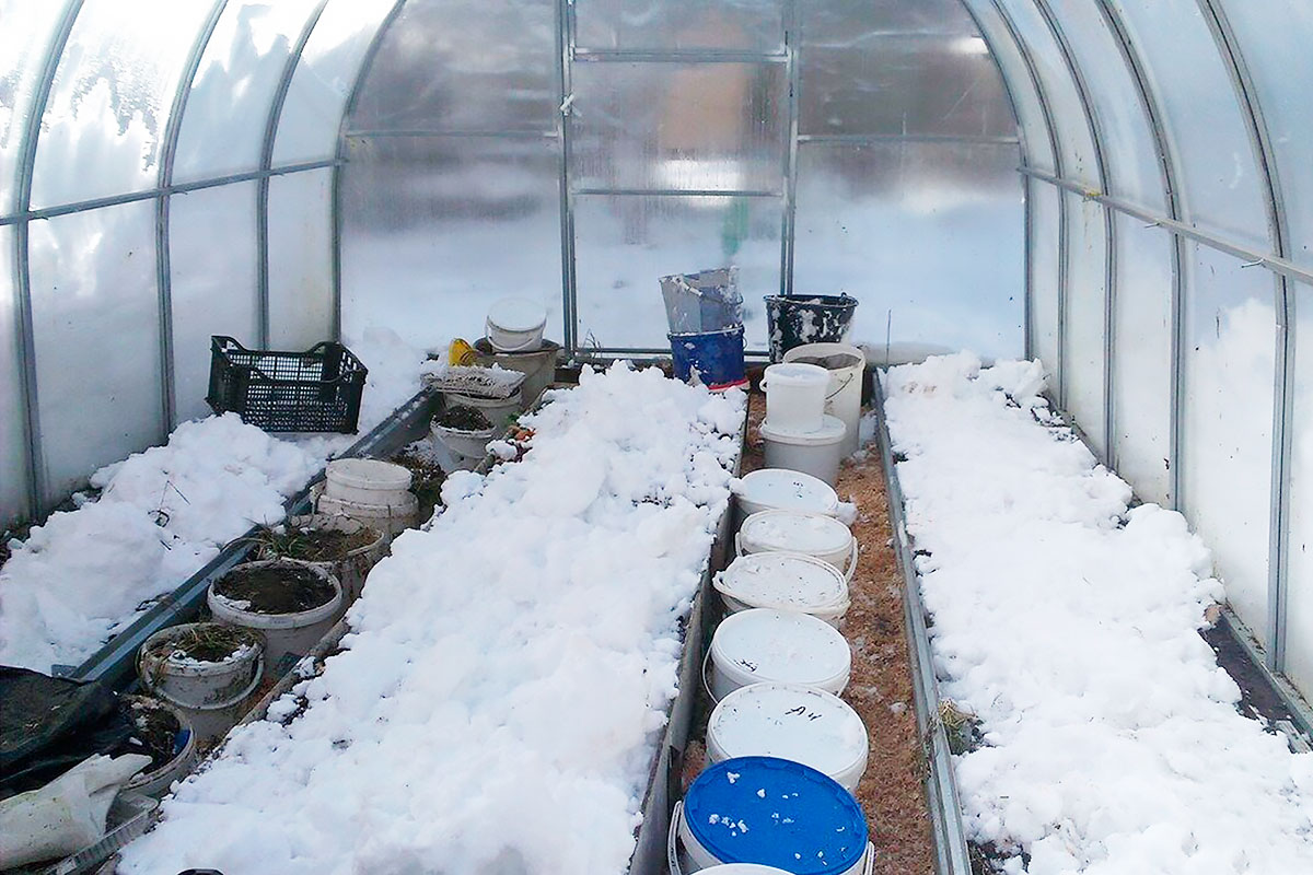 — Если в теплице нет снега (кто-то так ее промораживает и правильно делает), то в конце февраля самое время снега закинуть, а когда растает, вновь заложить снег, — говорит Андрей.