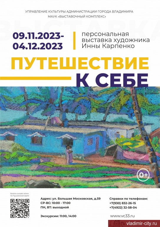 9 ноября 2023 года в 15.00 в Выставочных Залах на Большой Московской состоится торжественное открытие персональной выставки художницы Инны Карпенко «Путешествие к себе».