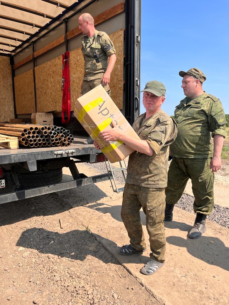 Основной задачей поездки являлась доставка необходимого материала для данных лагерей, а именно металлические трубы (предоставила администрация Собинского района) для постройки спортивного комплекса. Собинский ДК передал проектор, маскировочные сети, которые плетут все неравнодушные жители города Собинки, особенно хочется отметить наших ветеранов, которые принимают самое активное участие в сетеплетение. Администрация города Собинки передала ноутбук и пилораму.
