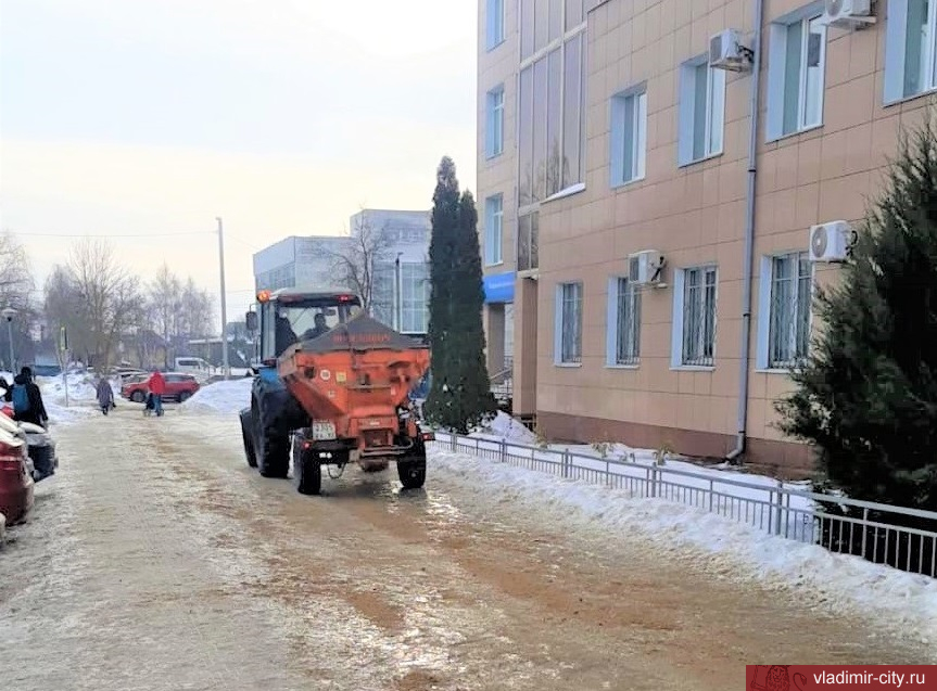 В 13.00, после непродолжительной пересменки, на улицы Владимира вновь вышли бригады ручной уборки и муниципальная коммунальная техника, которые с раннего утра обрабатывают от гололеда проезжую часть автомобильных дорог, тротуары,