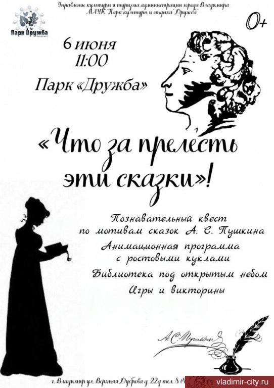 6 июня в парке культуры и отдыха «Дружба» состоится Пушкинский праздник для детей «Что за прелесть эти сказки!».