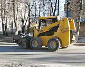 Осуществляются работы по механизированной уборке съездов на пр. Ленина, ул. Малеева, ул. Лопатина. Задействованы два трактора и водовоз «Агромаш».