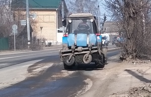 Механизированная уборка автомобильных дорог проводится на ул. Муромской, ул. Абельмана, ул. Дегтярёва, ул. Белинского, ул. Ново-Белинского, ул. Долинной, ул. Свердлова. Работают 3 трактора и водовоз КДМ.