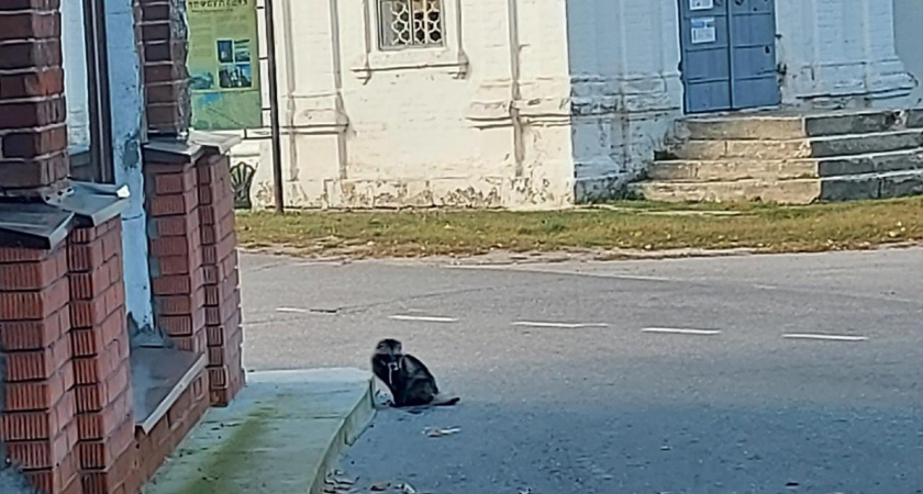 В центре Гороховце была замечена енотовидная собака. Она сидела на одном месте, словно привязанная, и истекала слюной.