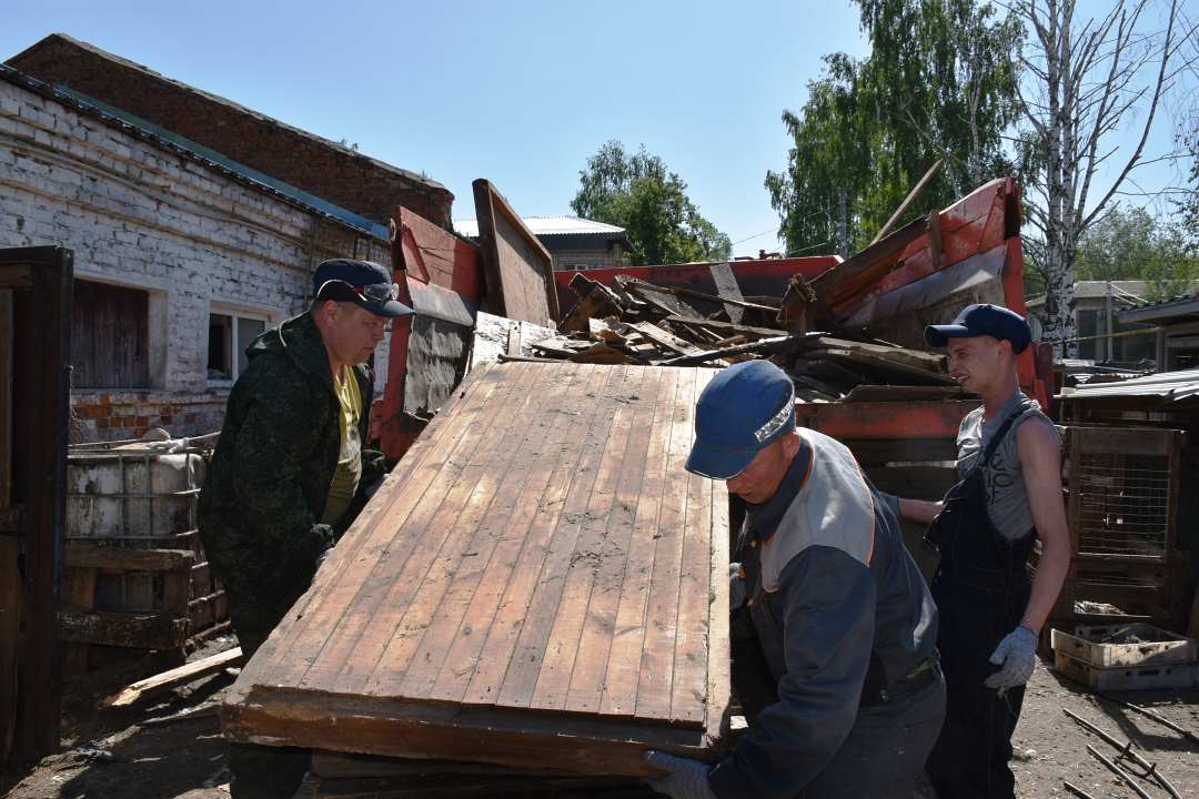 Работниками «Гусара» была начата расчистка здания площадью порядка 100 кв. м, где в скором времени планируется ремонт, помогли с погрузкой тяжестей в машину для вывоза мусора.