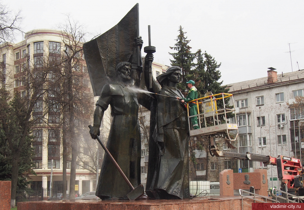 Владимирские коммунальщики проводят сезонное обслуживание городских памятников