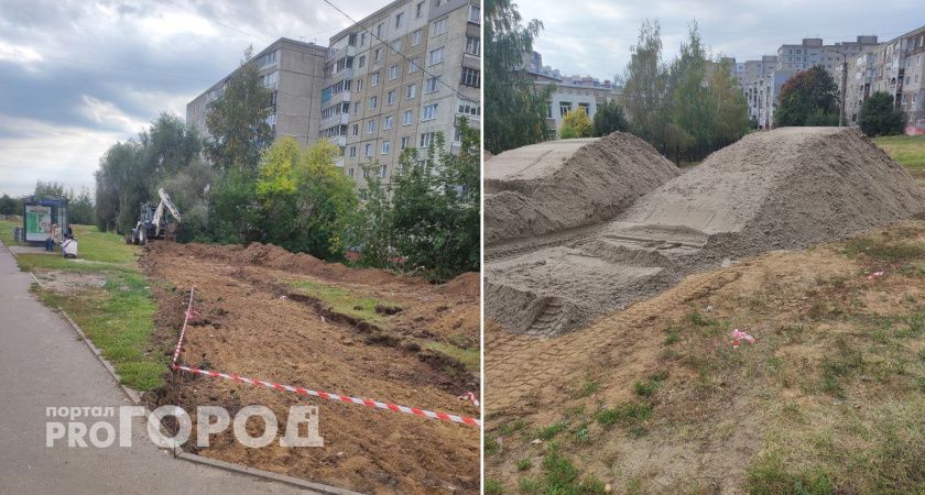 На первом этапе работ в районе улицы Тихонравова обустраивали ливневую канализацию. Сейчас территорию будущего сквера оградили сигнальными лентами, привезли партию плитки, пригнали спецтехнику.