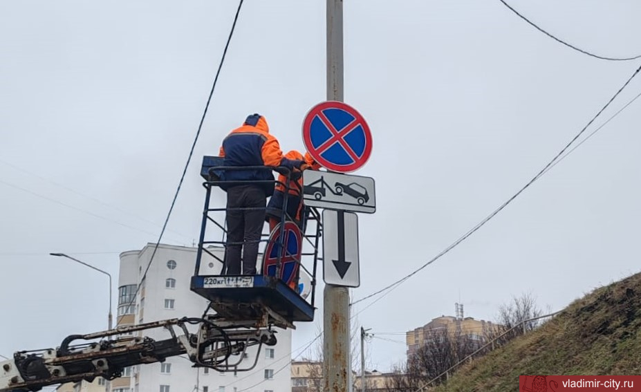 Во Владимире на ул. Нижняя Дуброва устанавливают новые дорожные знаки