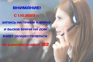 С 1 октября запись на прием к врачу и вызов врача на дом осуществляются по единому номеру колл-центра: 122.