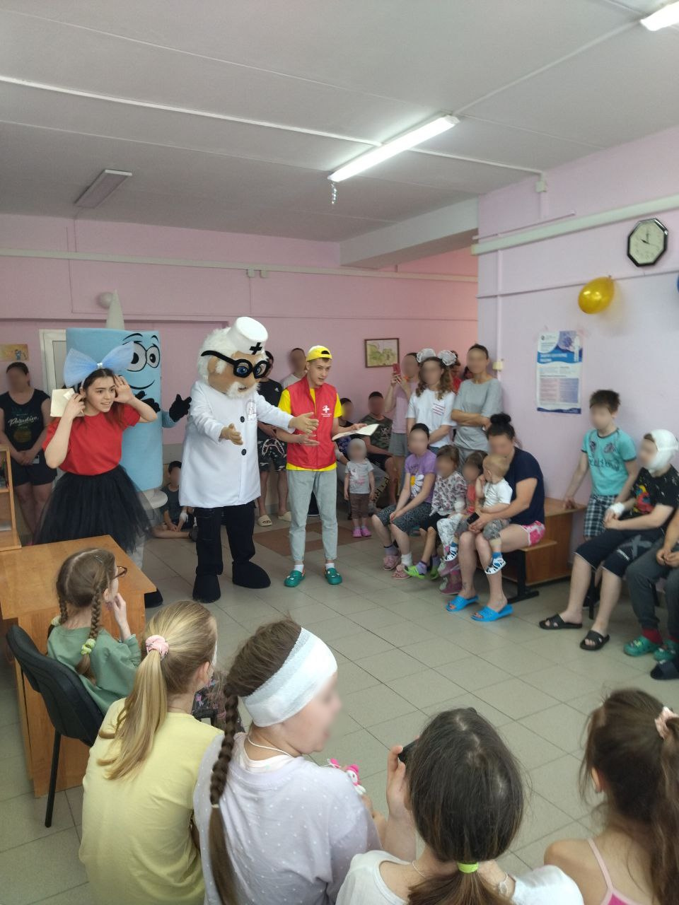 Участие студентов в благотворительных акциях – это не только традиция, которая сложилась во Владимирском базовом медицинском колледже, но и неотъемлемая часть всего учебно-воспитательного процесса. Подарить праздник детям, подарить и получить в ответ незабываемые эмоции – вот что самое главное было сегодня, 1 июня 2023 года, в Международный день защиты детей. В этот праздник, студенты колледжа, члены добровольческого отряда «Доброе сердце» и регионального отделения «Волотёры - медики» подготовили свой подарок маленьким пациентам и провели благотворительную акцию в областной детской клинической больнице города Владимира. Наши студенты провели анимационную праздничную программу в трёх отделениях: неврологическом, хирургическом и отоларингологическом. Маленькие пациенты с удовольствием поиграли, потанцевали и пофотографировались с аниматорами в костюмах доктора Пилюлькина, весёлого Шприца и других персонажей. Студенты - волонтёры навестили и тех ребятишек, которые не смогли покинуть больничные палаты из‑за болезни. В завершении программы каждому ребёнку были вручены наклейки и подарки.