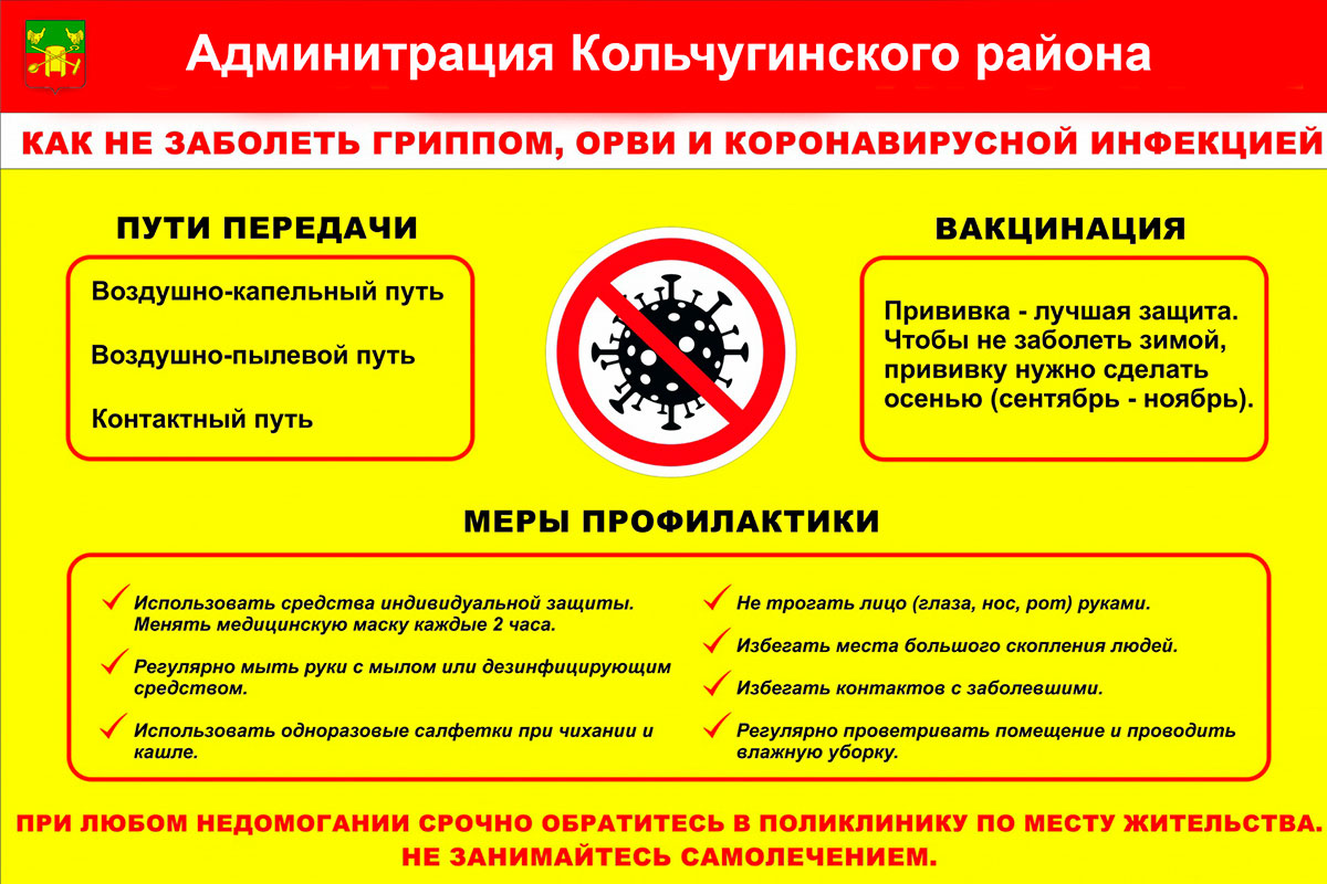 Специалисты территориального отдела Управления Роспотребнадзора по Владимирской области в Юрьев-Польском и Кольчугинском районах рассказали об инфекционной и паразитарной заболеваемости в Кольчугинском районе за сентябрь 2023 года. А кольчугинская администрация напоминает о мерах профилактики гриппа, ОРВИ и коронавируса.