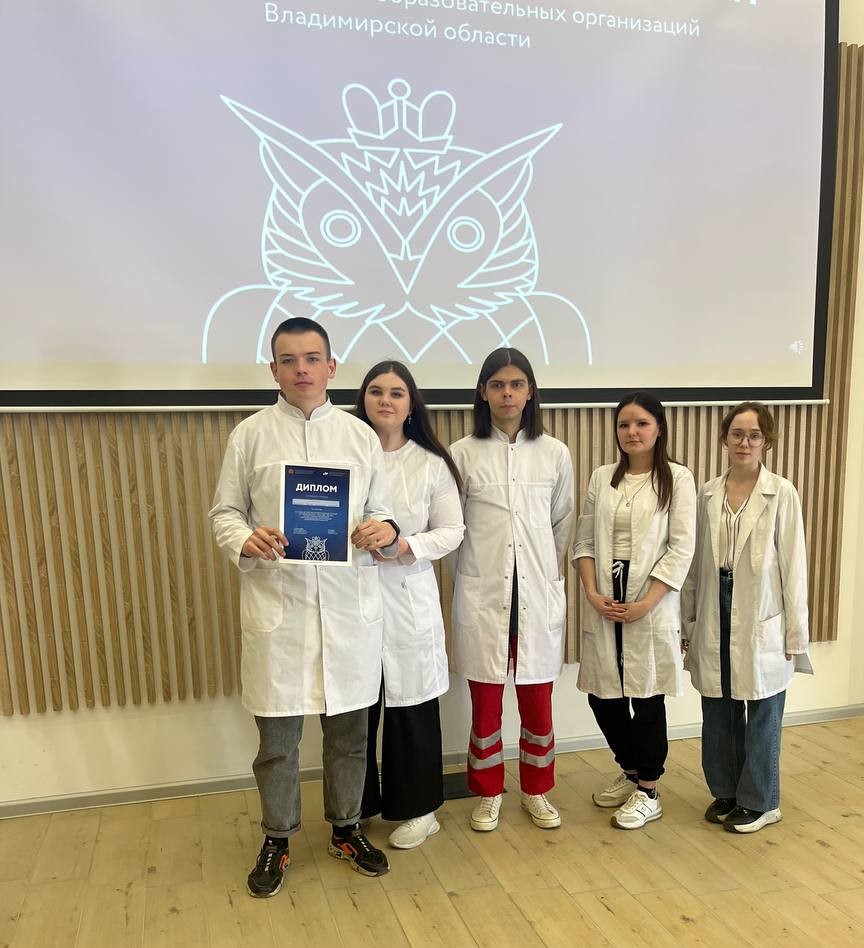 25 апреля 2023 года во Владимирской областной научной библиотеке, прошёл интеллектуальный областной турнир (по-спортивному) «Что? Где? Когда?» среди студенческих команд профессиональных образовательных организаций Владимирской области. В данном турнире приняли участие студенты нашего колледжа – команда «Эскулап» в состав которой вошли: Данилов Станислав (гр.СД-26а/б), Алаев Сергей (гр.СД-26б), Хлюстова Анастасия (гр.СД-10/б), Славкова Ольга (гр.СД-16б), Воронцов Илья (гр. ЛД-17б), Ванин Артем (гр.СД-26б). Студенты показали хорошие результаты в общем зачёте. Впечатления от соревнований у студентов остались только положительные. За подготовку участников команды благодарим преподавателя Кондакову Екатерину Аскольдовну!