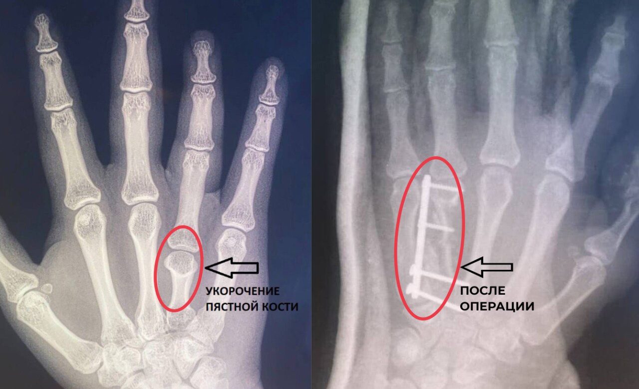 У пациентки выявили брахиметакарпию – врожденная патология, проявляется укорочением одной или нескольких пястных костей, из-за уменьшается длина пальцев. Дефект опаснее, чем кажется, ведь он становится причиной проблем с мелкой моторикой. Чаше от заболевания страдают девочки.