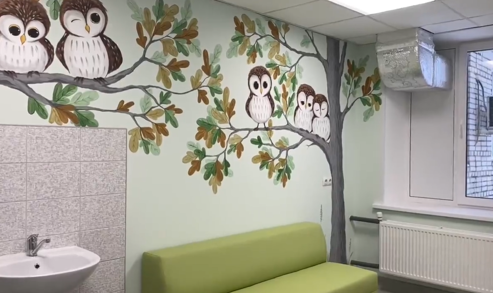 Чтобы юные пациенты быстрее шли на поправку, на стенах стационара появились яркие картины.