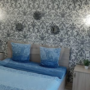 УДОБСТВА: Очень большая 2-х спальная кровать (размер кровати 180см /200см), в квартире есть все необходимое для проживания, отдыха и работы: Телевизор с плоским экраном, кабельное ТВ , Wi-fi, электрочайник, холодильник, СВЧ, варочная панель, фен, утюг, гладильная доска, вся необходимая посуда для приготовления и приема пищи, комплект застеленного постельного белья, полотенца.