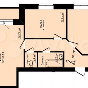 - Общая площадь: 64.1 м²