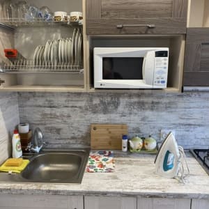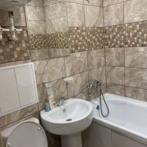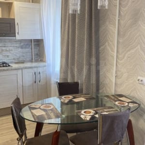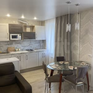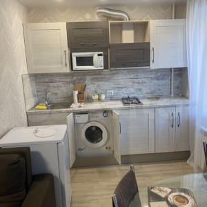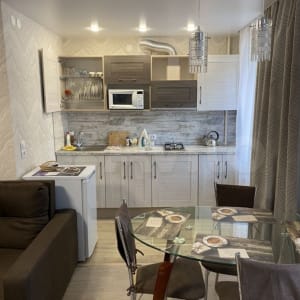 В квартире имеется кондиционер,холодильник,стиральная машина,микроволновая печь,водонагреватель, жк телевизор ,газовая варочная панель,двухспальная кровать, диван-кровать, туалетные принадлежности,имеется интернет (wi-fi). На полу ламинат и плитка в прихожей и на кухне,ванная комната в плитке.